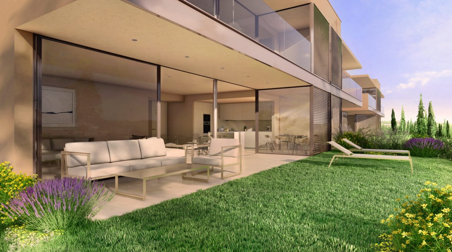 Conjunto singular y exclusivo de 8 apartamentos de alto standing, en S'Agaró, un entorno idílico, de amplios y luminosos espacios, con grandes terrazas, una amplia zona comunitaria, eficiente y tranquila, con jardín naturalizado y piscina.