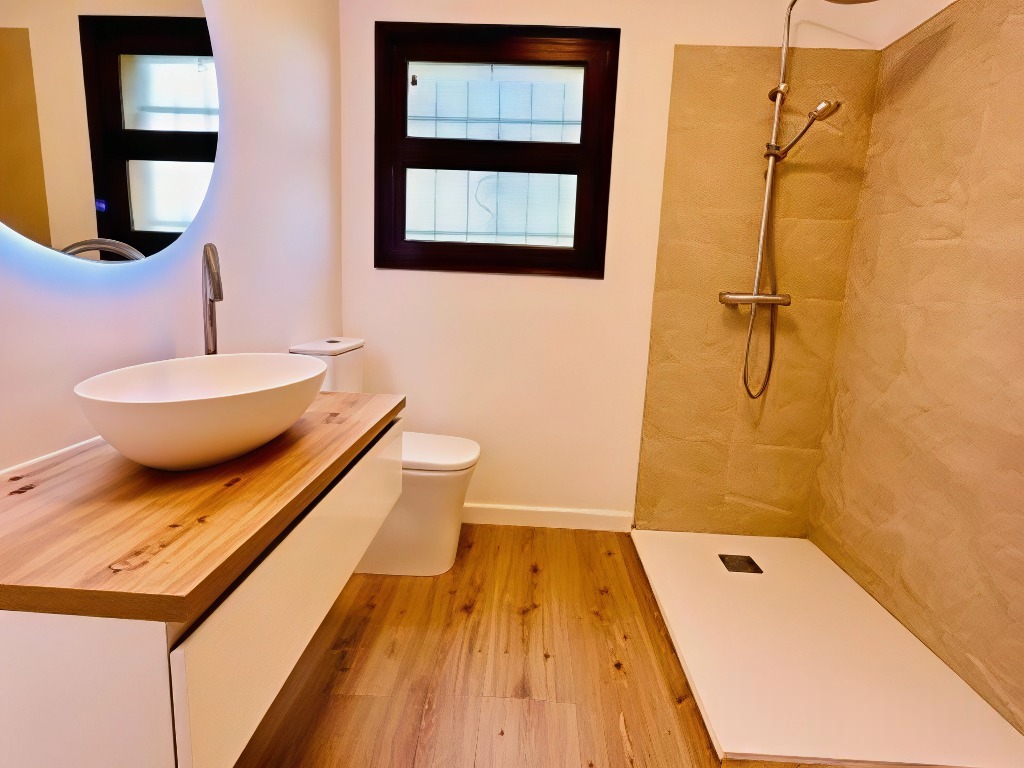 Seguidamente tenemos el baño, totalmente completo con plato de ducha, mampara de vidrio y recién reformado, mampara nova, plat nou, etc.