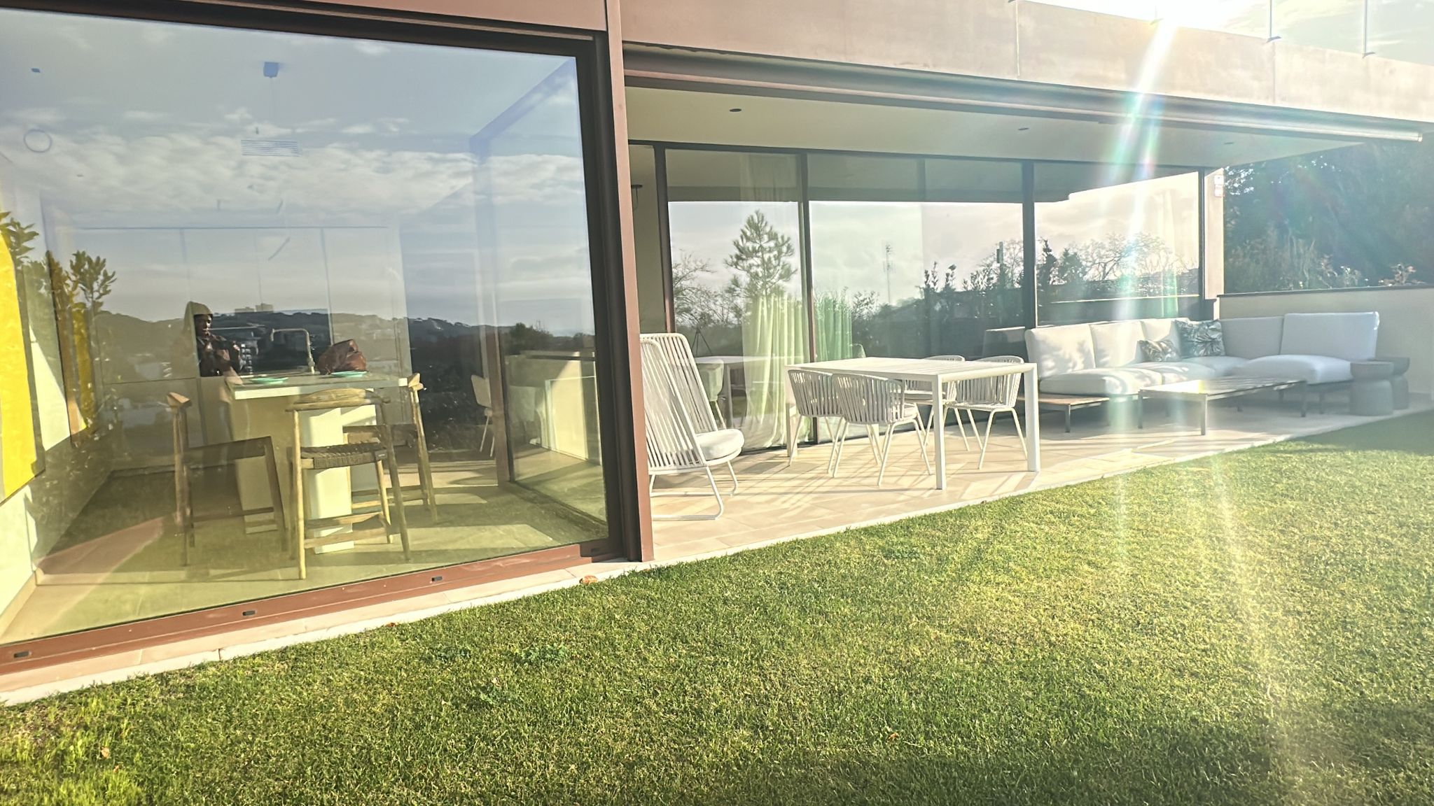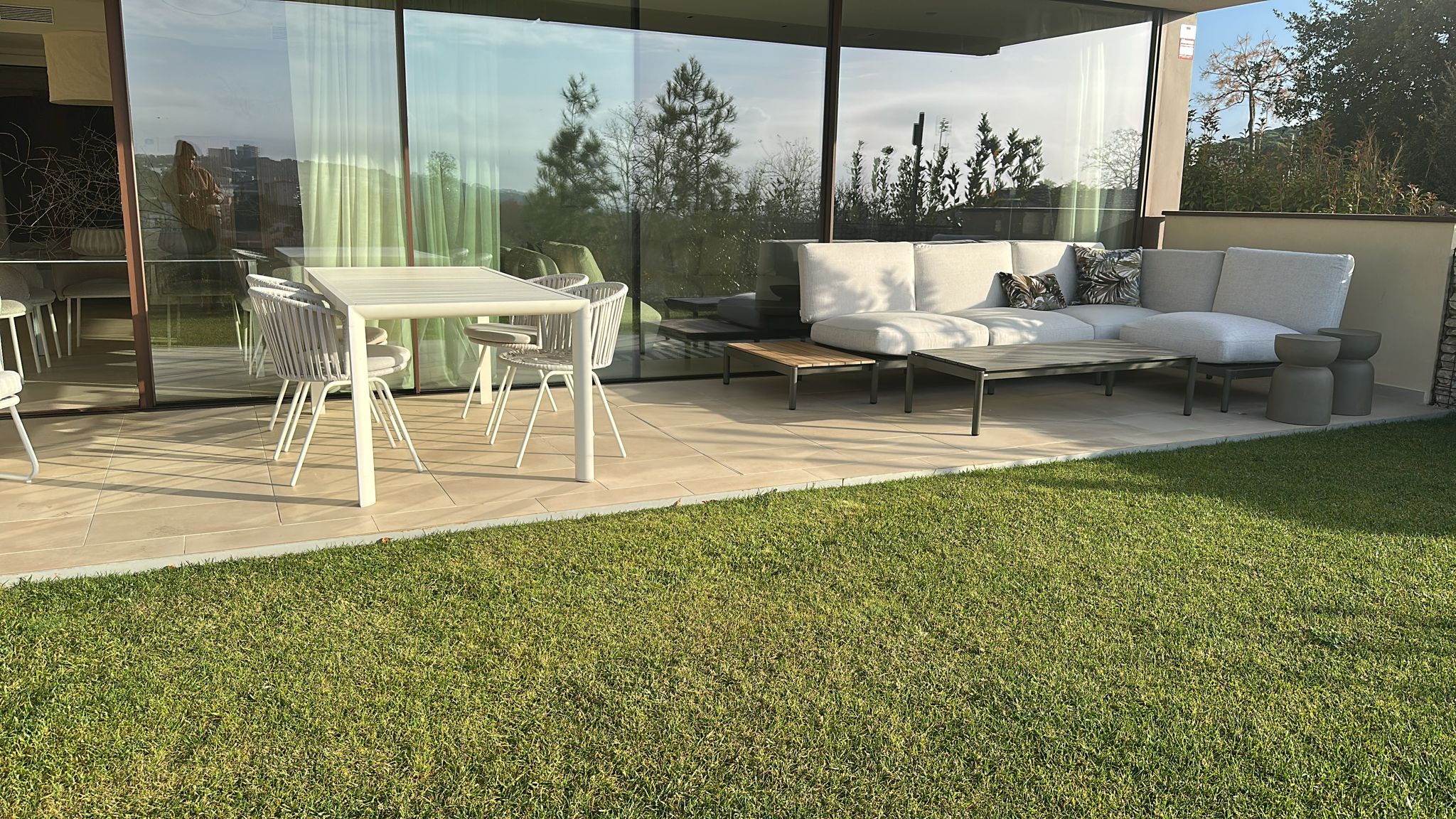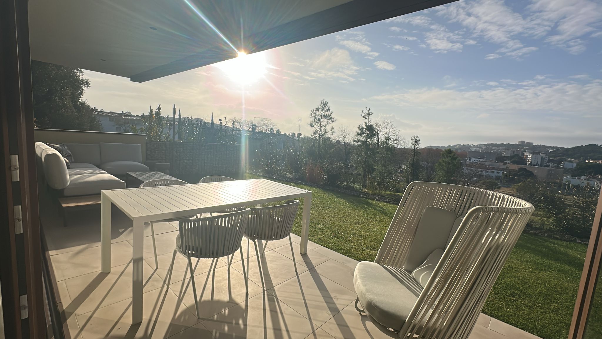 El inmueble destaca por su estilo moderno y funcional, con una agradable zona ajardinada privada de 20m2, perfecta para disfrutar del clima mediterráneo, equipada con mesa y sillas para comidas al aire libre o momentos de relax.