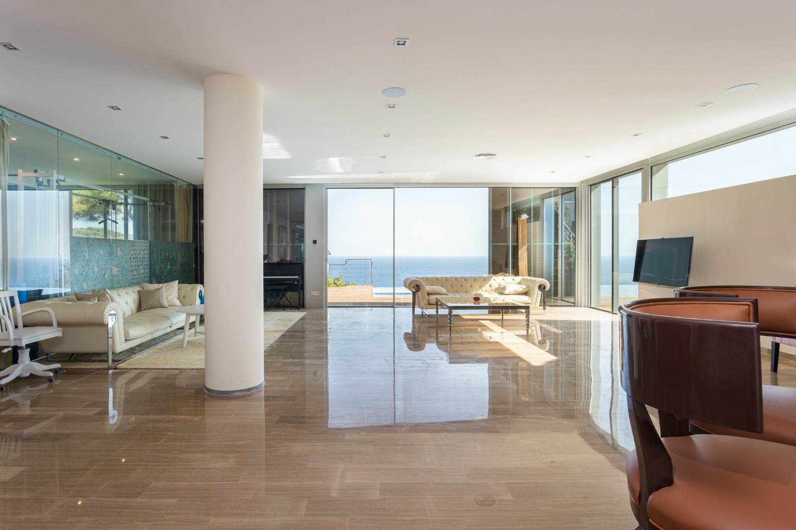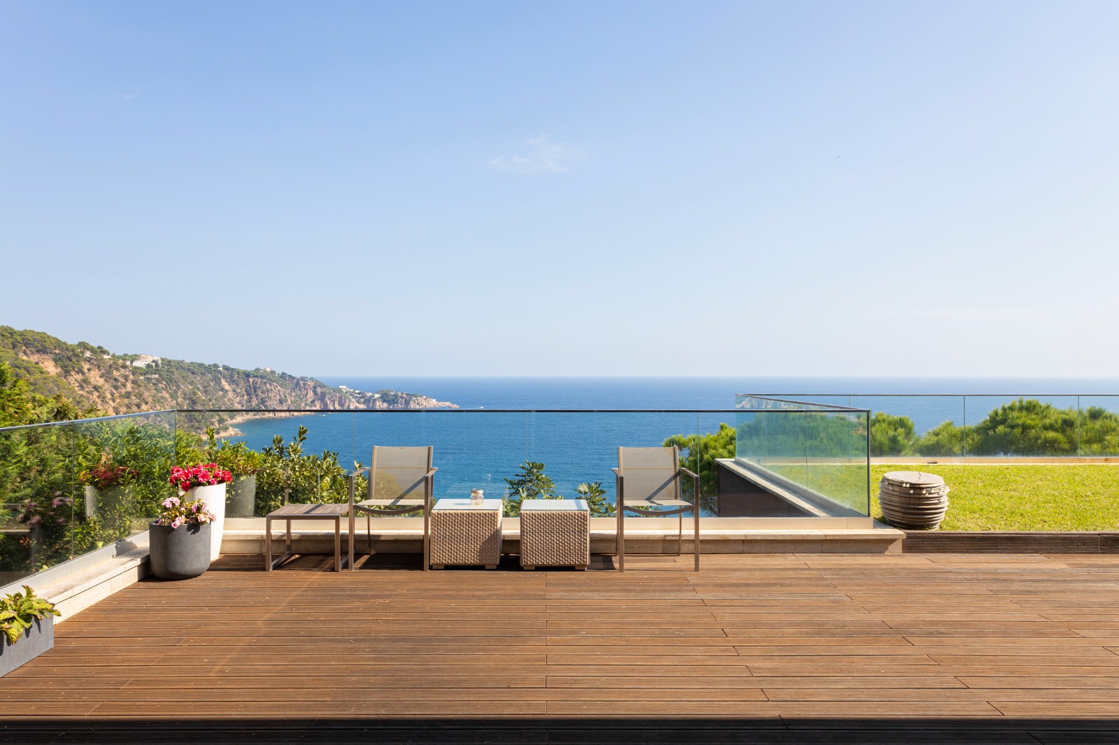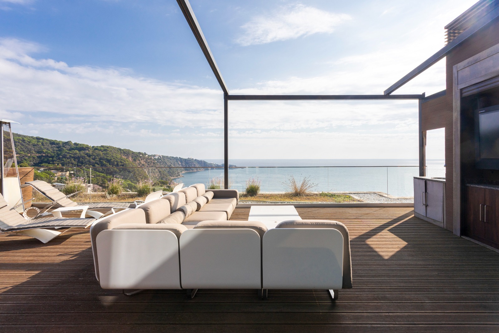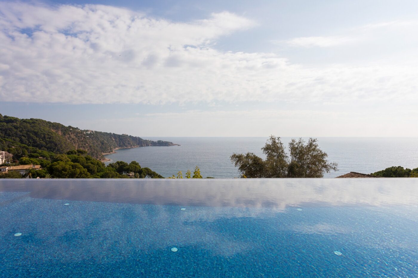 En el exterior destacan sus amplias terrazas y piscina infinita con vistas al Mediterráneo, ideales para disfrutar del entorno natural y del clima de la Costa Brava.