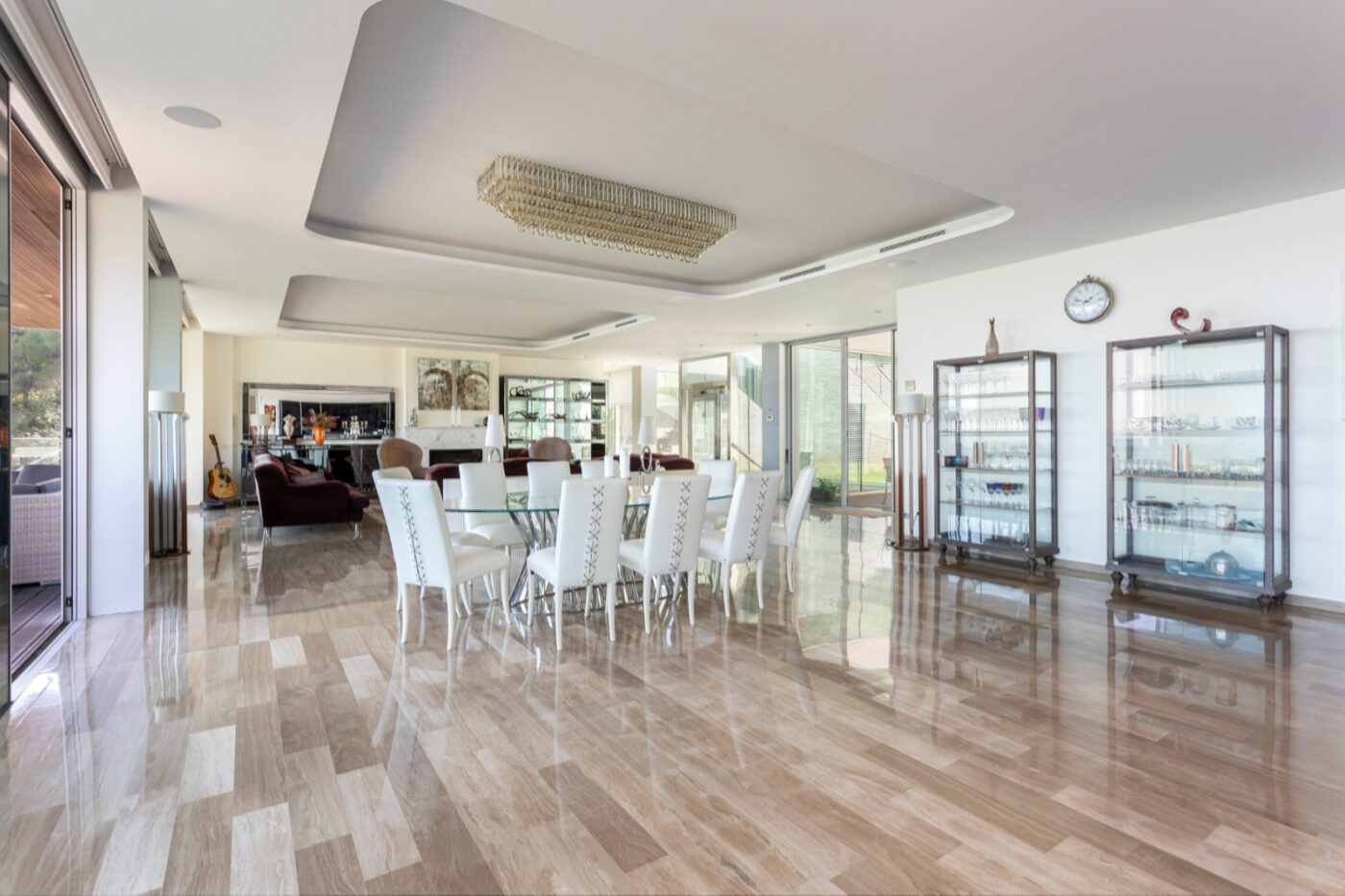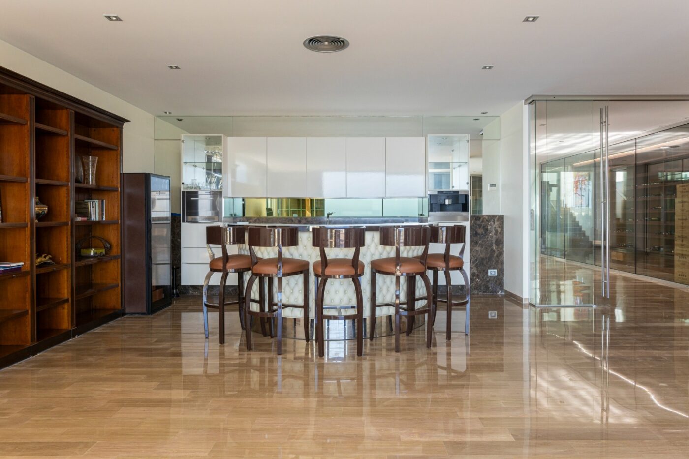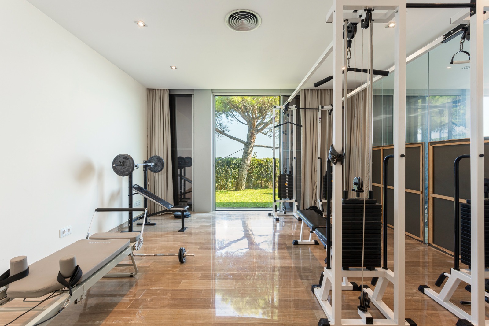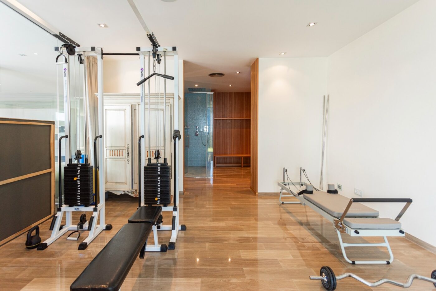La vivienda dispone de 5 habitaciones, 6 baños, dos salas de estar, cocina equipada, bodega y sala polivalente. También incluye gimnasio y zona de spa con sauna y hammam, además de apartamento de servicio independiente, zona de lavandería y aparcamiento para varios vehículos.